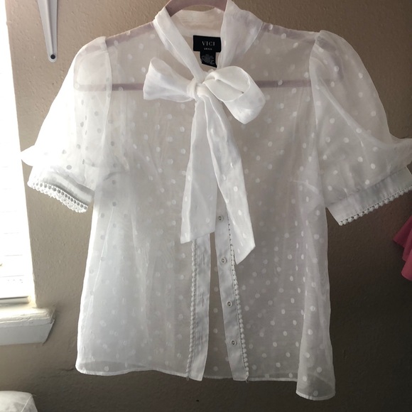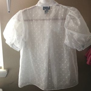 Sheer puff sleeve white blouse