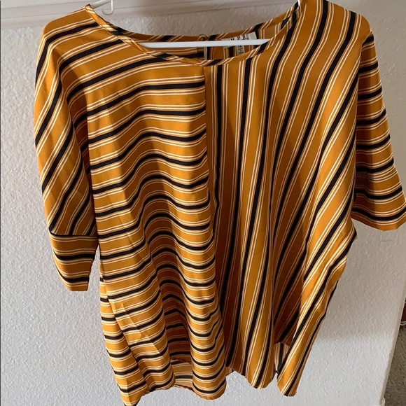 Yellow, white and black blouse.