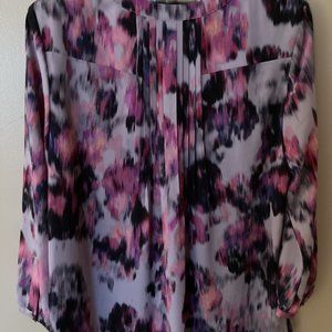 Beautiful multi-colored blouse with pleat details in the back. Can be worn with leggings or pants for a professional look or dressed down with jeans. Worn once. Is sized S but generously proportioned.