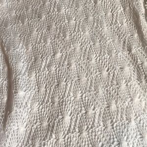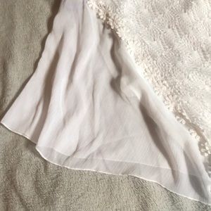 NWT This blouse is beautiful!! It’s white with crotchet lace on the front and back. It has flowy short sleeves. This blouse could be dressed up or down. It also has a sewn in tank. Very stylish!!