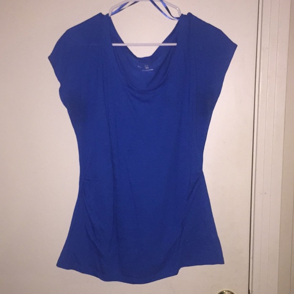 Cotton Tee. Some bunching on the side, very flattering. Bell sleeves. Smoke/pet free home
