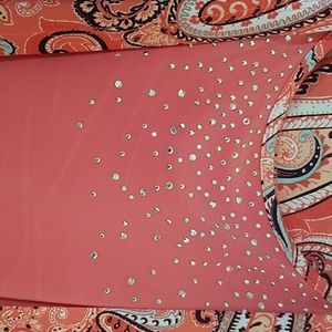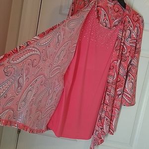 Very colorful and comfortable. Connected blouse over shirt. 96% polyester, 4% spandex. Sparklely beads. Worn once.