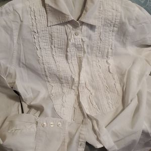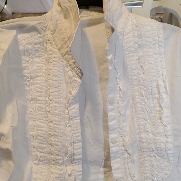 J.Crew cotton ruffled tuxedo bib front long sleeve 3 button at cuff.Great shirt worn with love til the next dainty lady gets her