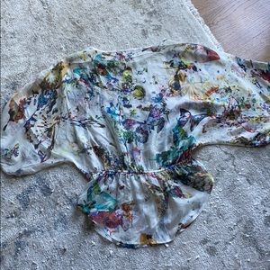 Short sleeved sheer flowy blouse with adorable butterfly pattern-cinches at the waist- looks really cute on- from a local boutique