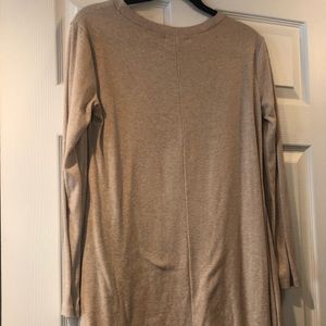 Long sleeve, lace trim in the front. Can be worn as a dress with leggings
