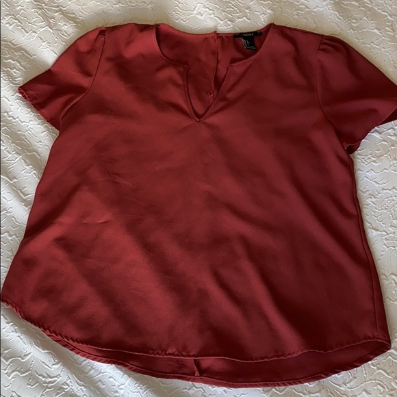 Dark red blouse from Forever 21! No flaws, stiffer but flowy material, best fits someone B cup or under!