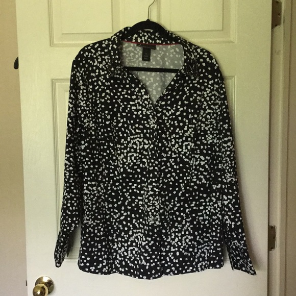 Black and white polka dots with rime stones on the collar