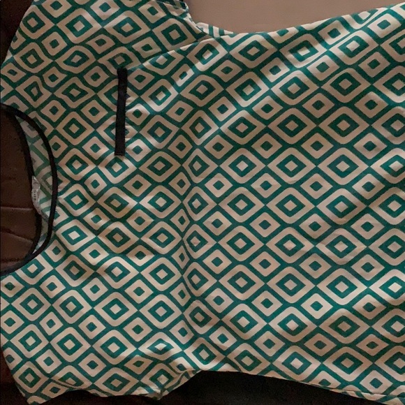 Green and cream designed blouse. Honestly am not sure if this is a small or medium.