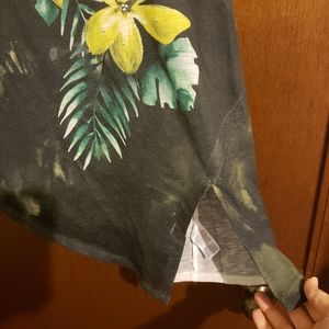 One side of shirt has a built-in split at the bottom hem..as pictured. This was one of my favorite shirts.