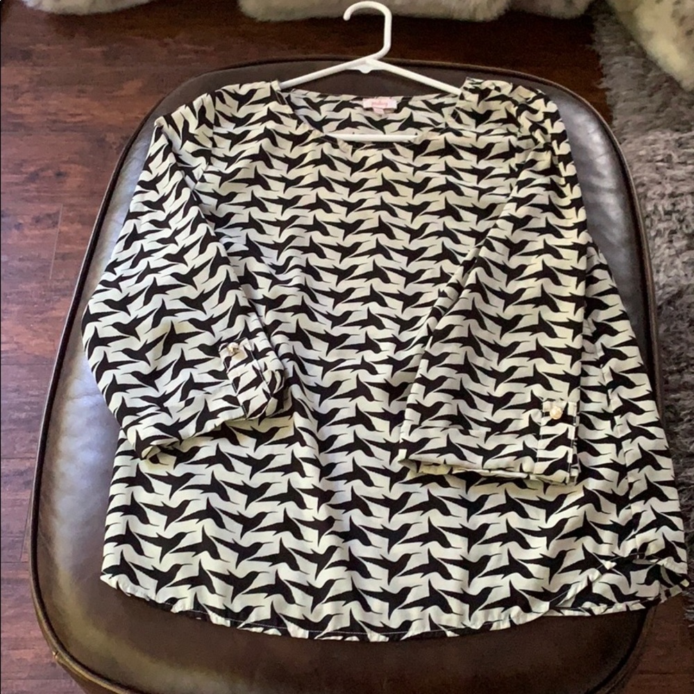 Ivory blouse with black birds as pattern