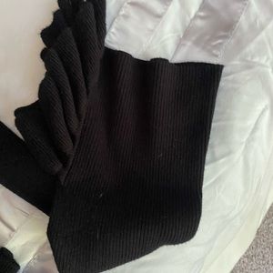 Cute black open shoulder blouse, V cut, had some ruffles on the sleeve, Medium but fabric is stretchy and thick