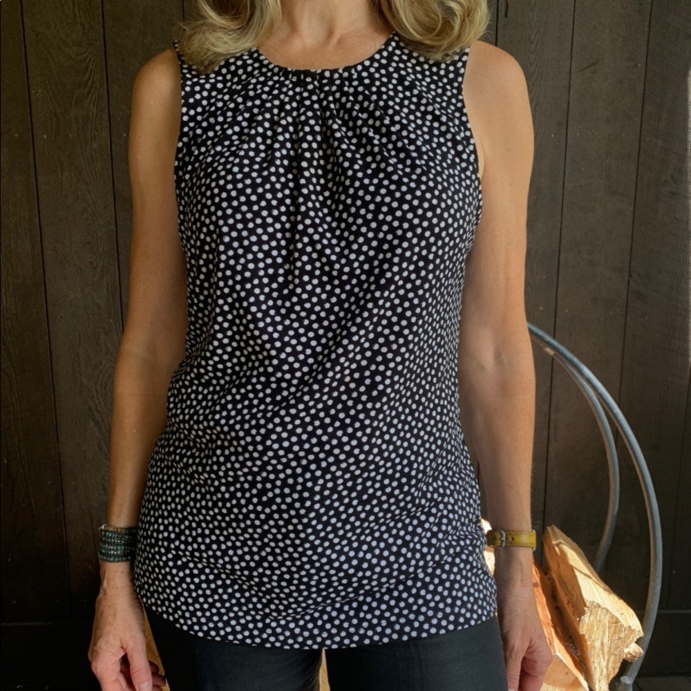 Fun, goes with everything, blouse. Flattering neck line and cute scissor opening in the back. Great work staple. THIS FITS a small generously and a medium more tightly. #workclothes #professional