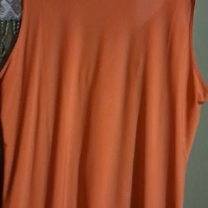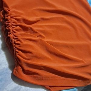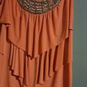 Burnt orange low cut top short sleeves with gold beads on front elastic on sides.