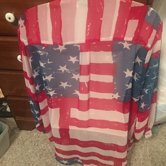 Patriotic sheer blouse 100% polyester.
