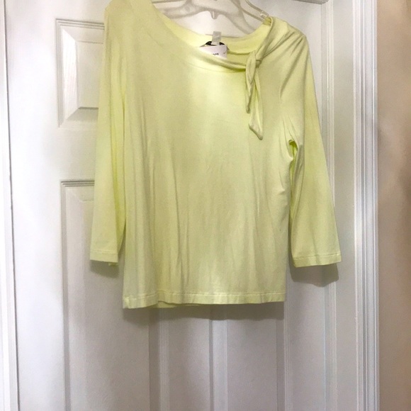 New Light neon color green blouse with side bowtie at neckline has 8% spandex