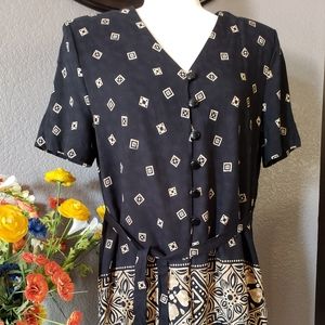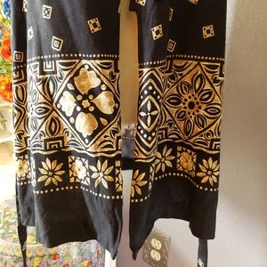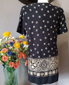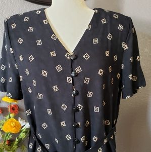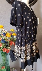 Short sleeve blouse. Tie on waist. 2 way belt tie. You can tie on front or back. Cute blouse worn once. Front black buttons. Side slits. No fades. No rips. Care Instructions tag not readable. Blouse In great condition.