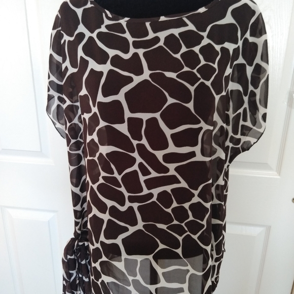 Cute regular fit top. Can be tucked in or out with adjusting waist tie.