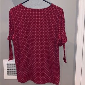 Blouse magenta and only worn a handful of times either can dress up or down and has key hole ties on sleeve. From smoke and bug free home in great condition.
