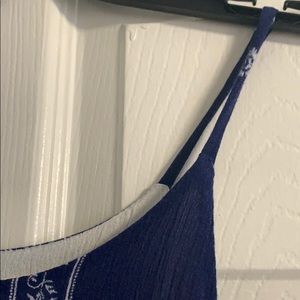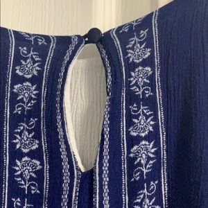 Blue with white floral patterns tank top buttoned up in the back very light weight