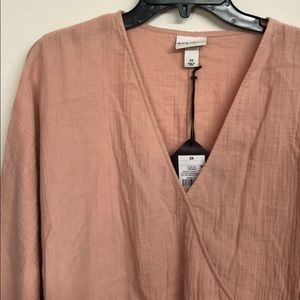 AvaViv wrap look blouse. Belted, gathered sleeves, hidden snap top closure