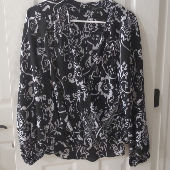 Like new INC blouse splits open in the middle need Cammy underneath generous size small probably could fit a medium too like new condition beautiful top longer in the back kind of bubble d hem front!