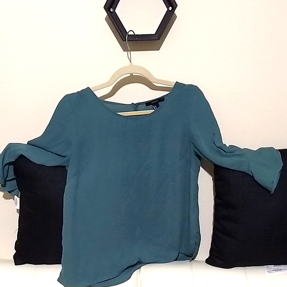 Turquoise blouse with bell sleeves