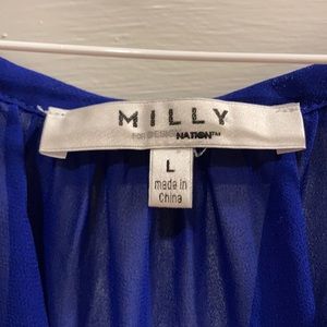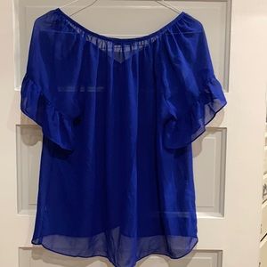 Royal blue blouse with tear tassels. Sheer, flare sleeves