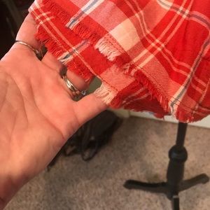 Very cute sleeveless top with frayed ends. Very comfortable and cute with jeans and shorts. Orange rust color. Button up. Only worn a couple of times.