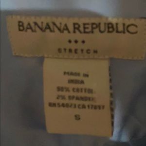 Banana Republic 4 button down, cut perfect for a more feminine shape with a button accent on each sleeve in size/S. Maybe a good work shirt at a office or something to that effect. I wore it in summer with khaki/white linen pants in evening. Perfect condition!