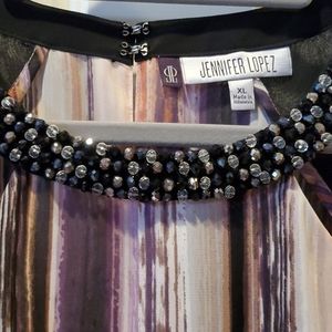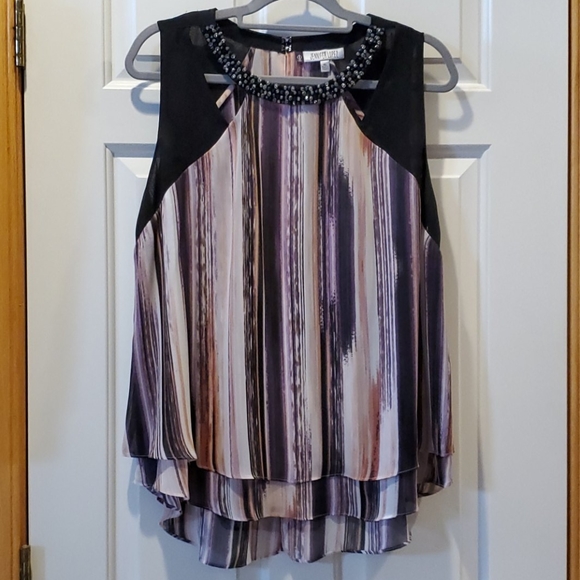 Sleeveless, beaded neck, high low hem, no tags but never worn