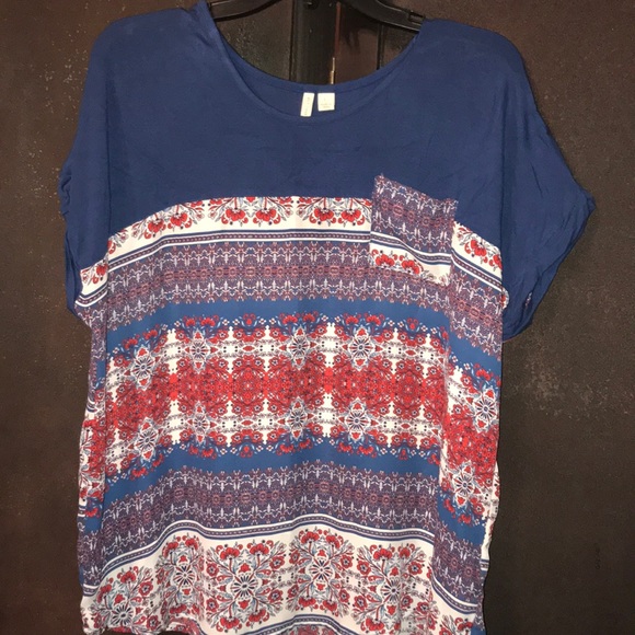 Bottom of blouse is a float silky material. Good condition. No flaws.