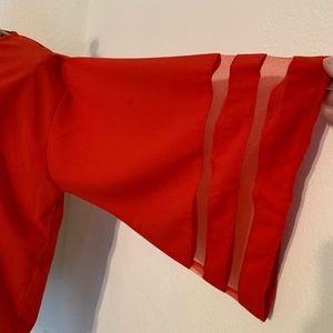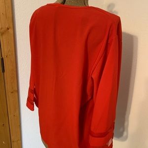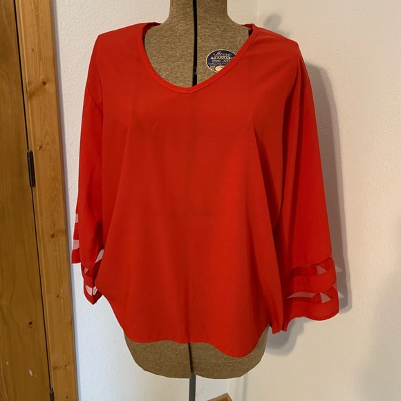 Beautiful chiffon red blouse with bell sleeves. I bought this and have never worn it. Super light weight. Size is 2x but fits like XL