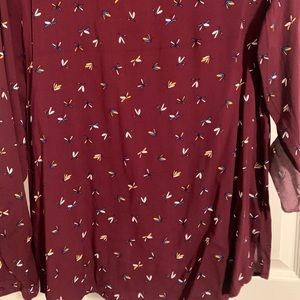Beautiful blouse with colorful birds. The sleeves can be worn down or buttoned up for a 3/4 length sleeve.