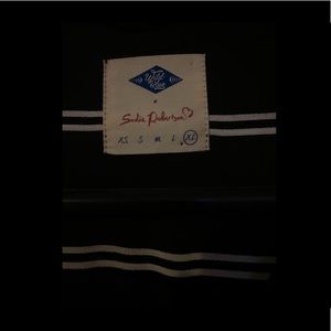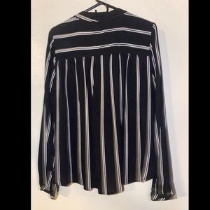 This is such a cute work top. Looks great tucked in. Fits more like a M/L rather than an xl like the tag says.