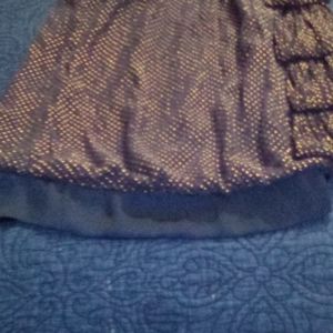 Very stylish dark with gold accents .has bows on on side . One shoulder