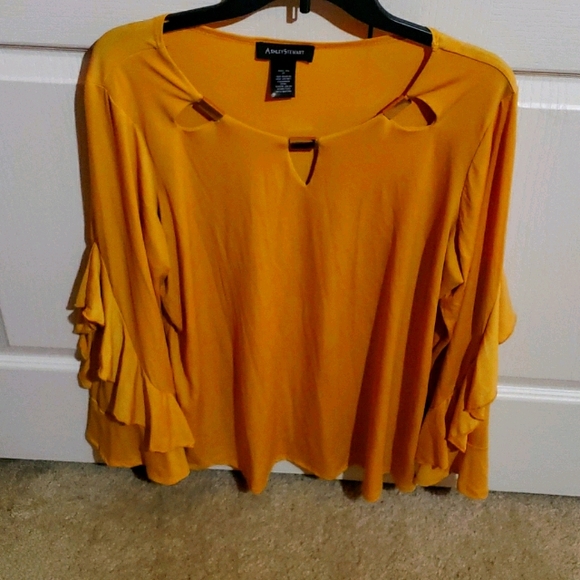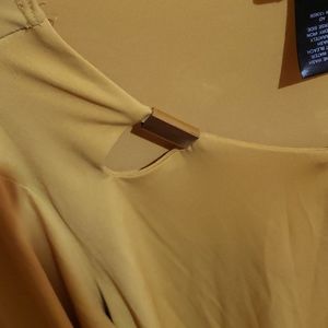 Canary Yellow with beautiful drape arms. Gold emblem in front. Beautiful for summer. Size 14/16.