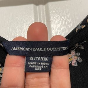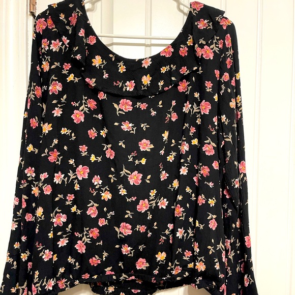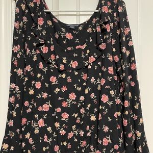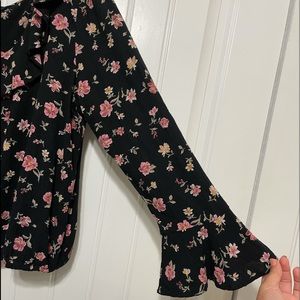 Black and pink floral blouse with flowy long sleeves