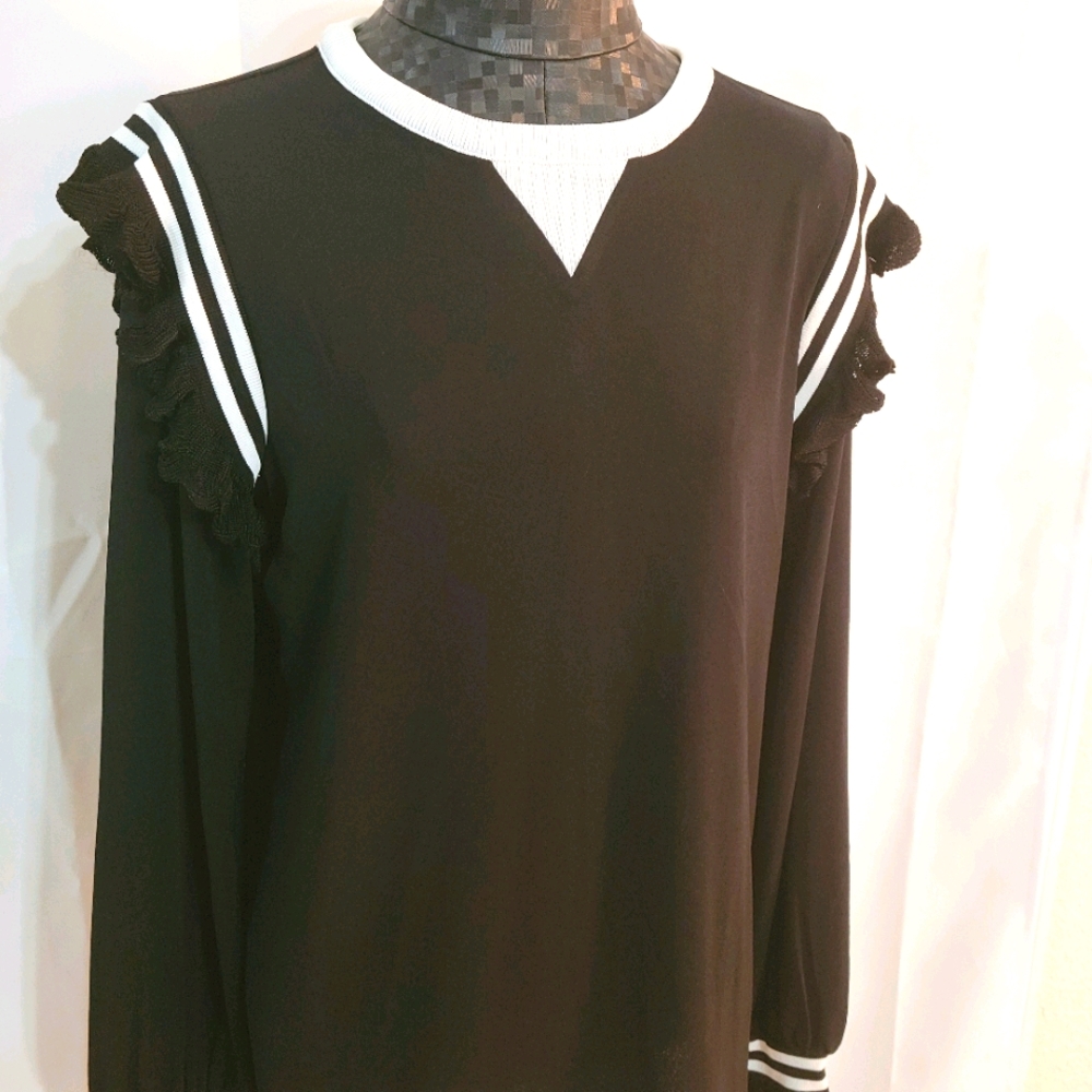 Belle Vere women's blouse. Black and white long sleeves. Size S. Classic top. Versatile. Pre-loved