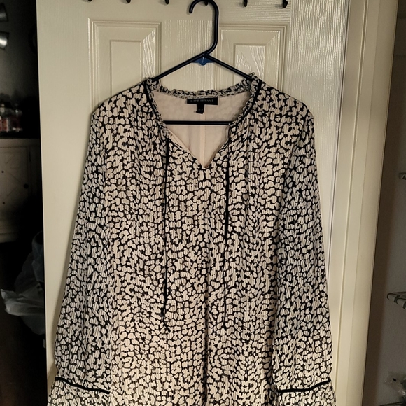 Patterned blouse. Minor flaw on sleeve the elastic loop for the button is ripped. NWT. Never worn.