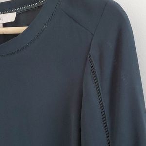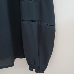 Dark green blouse with neckline and sleeve detailing and buttoned cuffs