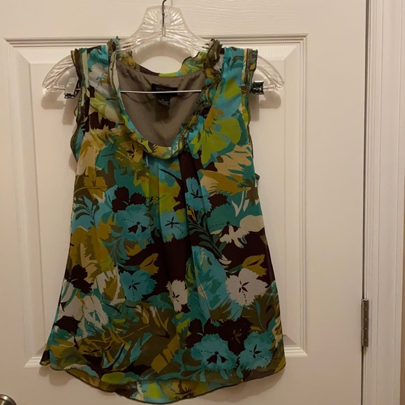Patterned, 4 layers tiny cap sleeve, round neck blouse