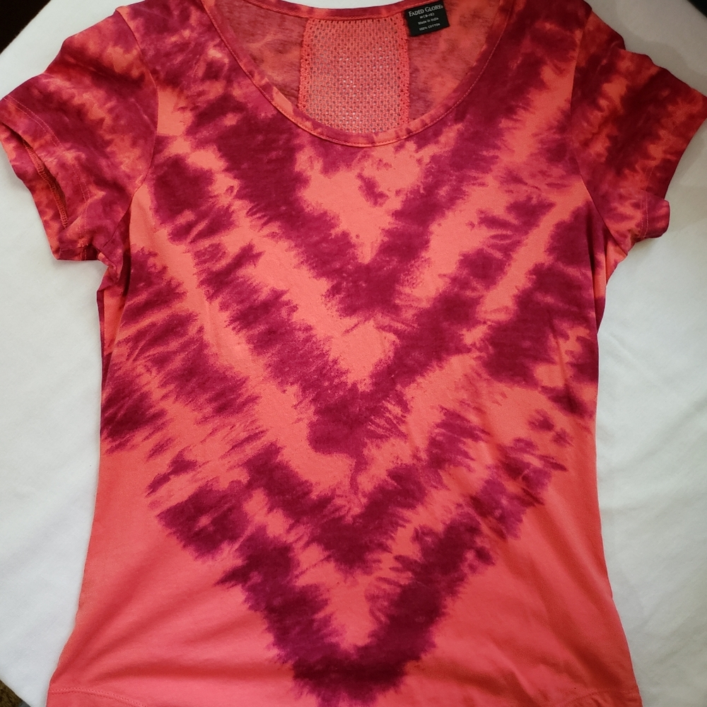 Very cute tiedye orange/purple top with a "netted" panel going down the back.