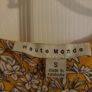 Loose fitting, cold shoulder blouse. The outline of the flowers is a navy blue