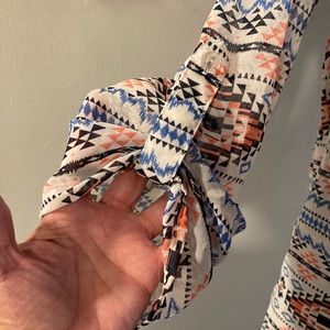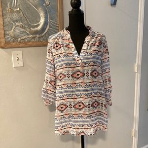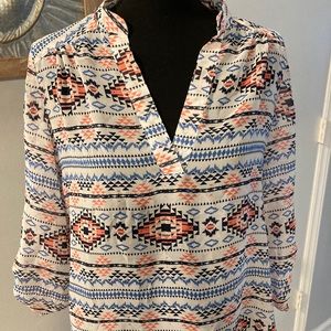This cute roll up sleeves with button detail with a Aztec print is just in time for Back to School