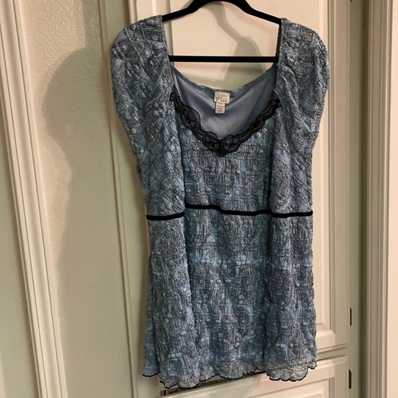 Empire style top with lace detail. Woven exterior with soft inner shell.