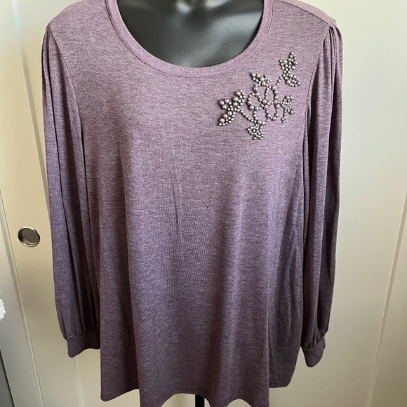 Super soft cotton, almost silky feeling…with pearl detail and a puffy cuffs sleeve. Lane Bryant 26/28 size