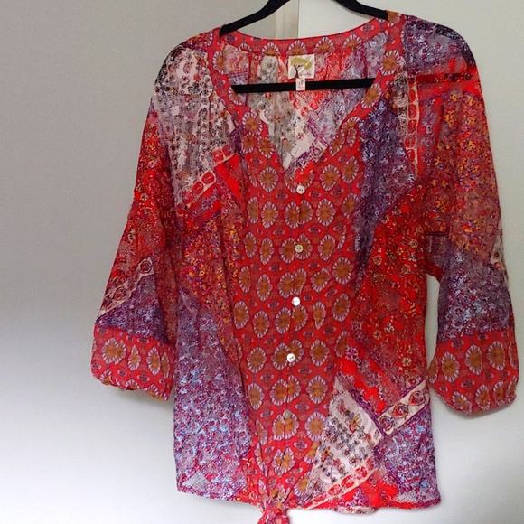 check out this patchwork mesh floral print blouse perfect for layering with a swim suit or bralette!