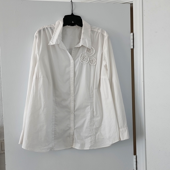 woman's long sleeve white button front blouse