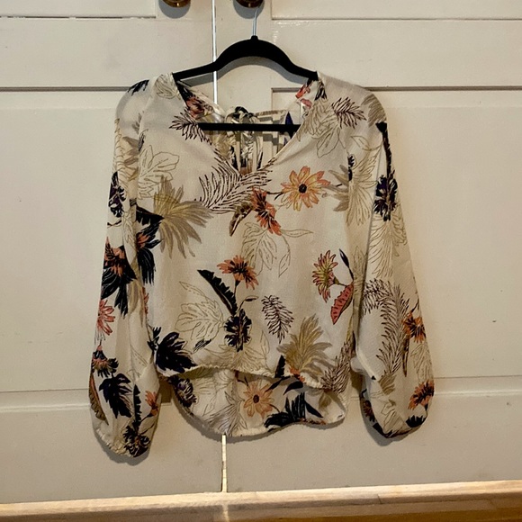 White floral Love Stitch blouse with a loophole tie back