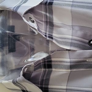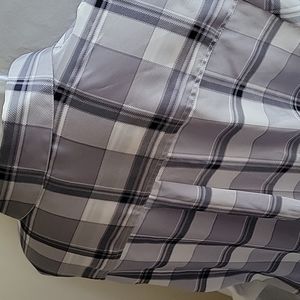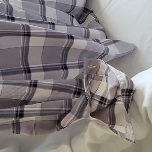 Long sleeves 5 buttoned front top..buttoned at cuffs gray plaid